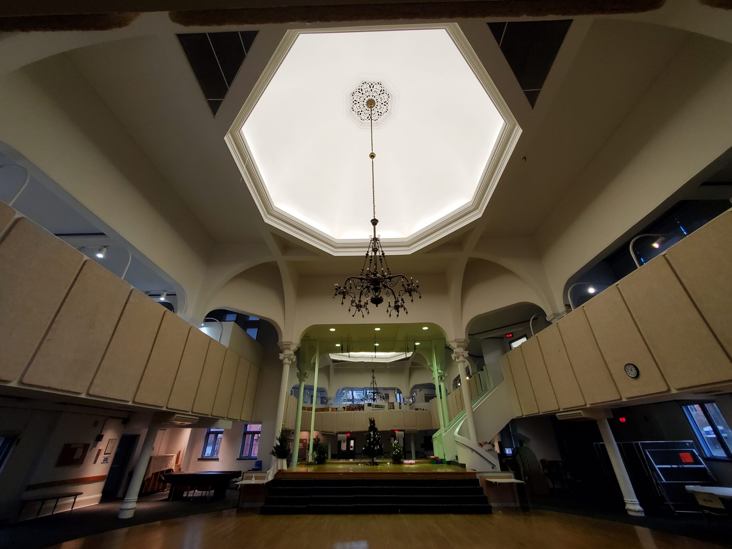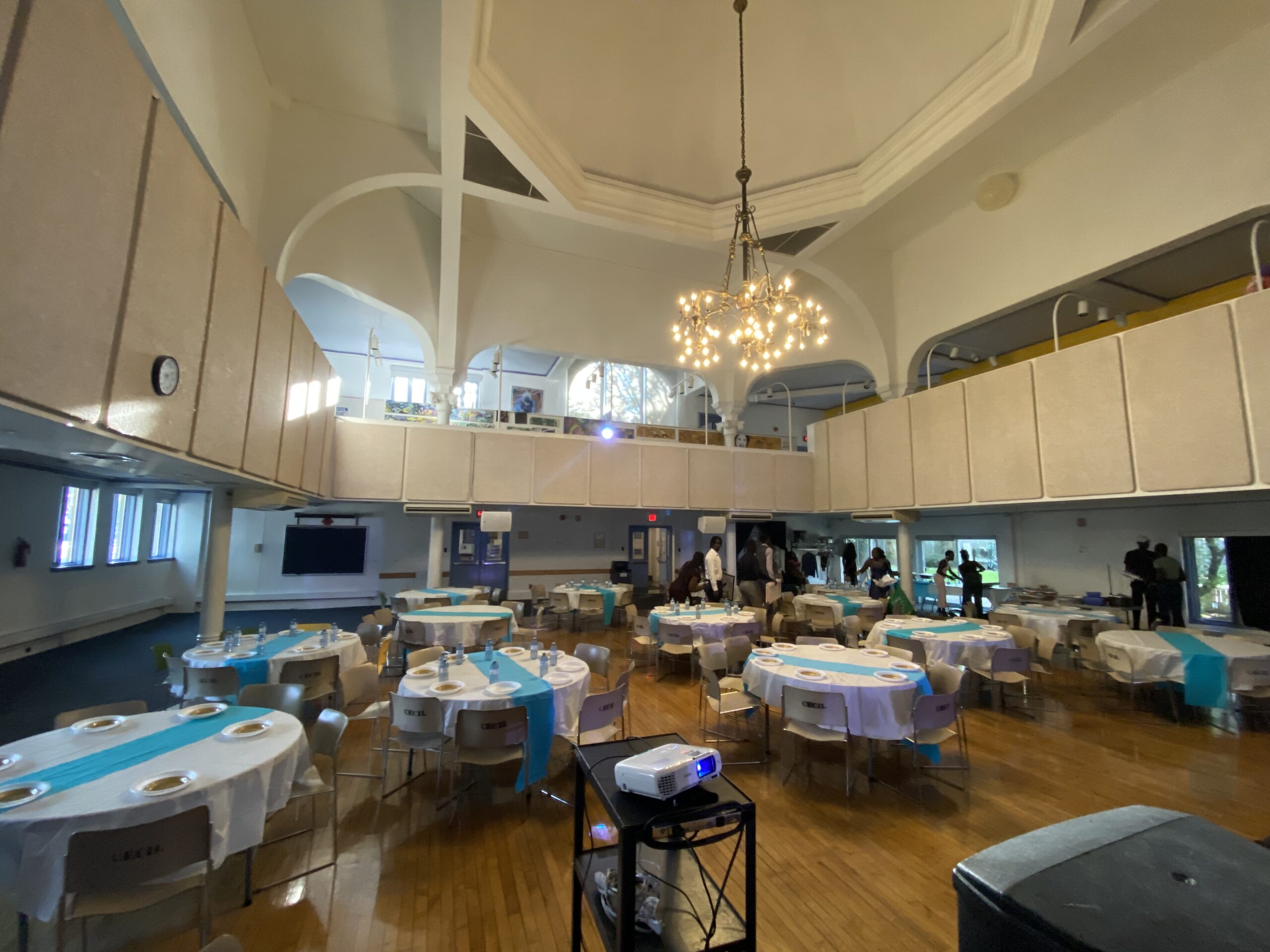Our Auditorium spans 3800 sqft, and comes with lofty ceilings, a nearly wall-to-wall mirror, a balcony level and controlled lighting with a beautiful centerpiece chandelier. As part of our Auditorium rental package, you’ll have access to all our tables and chairs, as well as 2 dedicated staff to help make your event a smooth as possible.